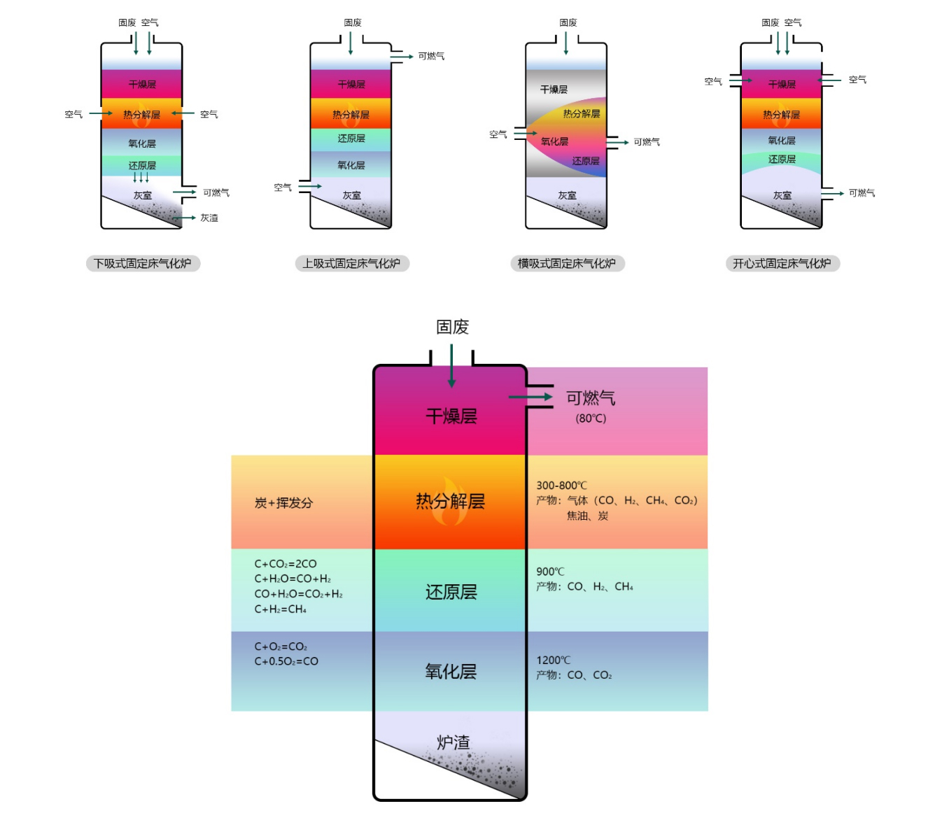 氣化爐是以農作物秸稈、園林廢棄物、食用菌渣、畜禽糞便、生活垃圾等具有一定熱值的有機垃圾和一切可燃物質為原料的氣化處理設備。由于這部分固體廢棄物具有高揮發分、高有機含量、低灰分的特點,將其氣化利用比直接燃燒具有明顯的優勢。